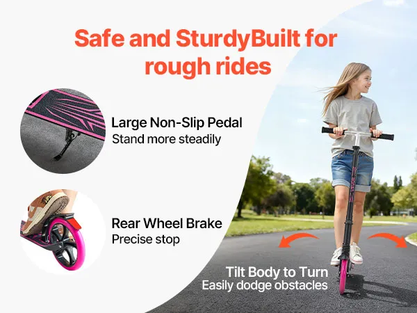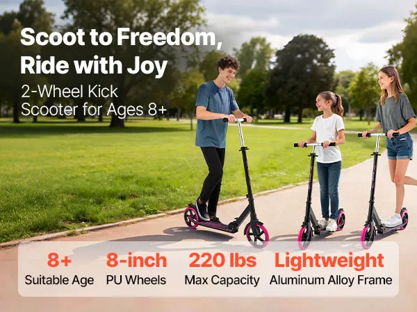 VEVOR Scooter (2 Räder) für Kinder ab 8 Jahren, Cityroller Kinderroller Straßenroller mit höhenverstellbarem Lenker & rutschfestem Deck & leichtem Rahmen, faltbarer Tretroller bis zu 100 kg, Pink