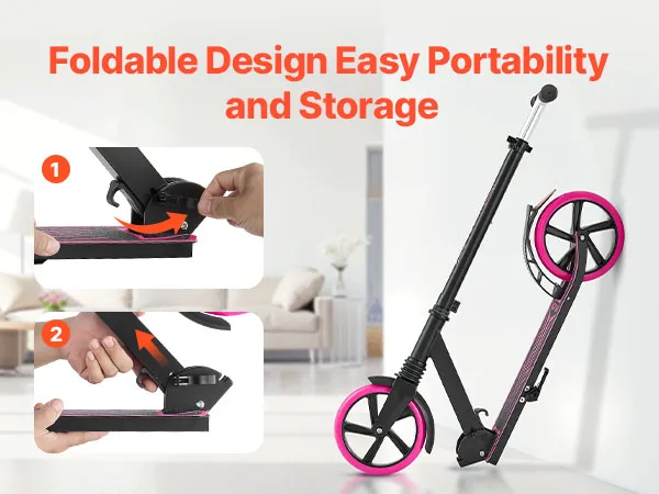 Sicheres Fahren & Zusammenklappbar: Das breite, rutschfeste Trittbrett des Kinderrollers sorgt für bessere Stabilität. Die Hinterrad-Fußbremse ermöglicht einfaches, kontrolliertes Anhalten. Der Roller lässt sich schnell zusammenklappen und ist leicht – einfach zu tragen oder im Kofferraum zu verstauen