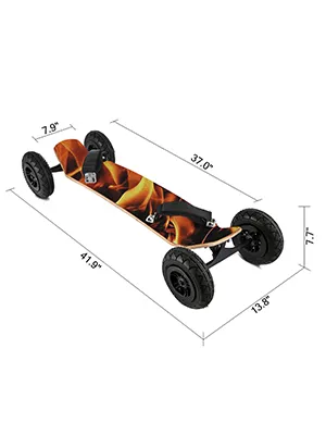 Das Longboard Deck wurde in TwinTip Shape mit Drop-Through designt für mehr Fahrstabilität. Unser Mountainboard besteht aus einem 10-Zoll-Rahmen aus Aluminiumlegierung, einer Achse aus Kohlenstoffstahl, 95 A, einem 85-prozentigen Rückprall-Stoßdämpfer und professionellen Lagern.