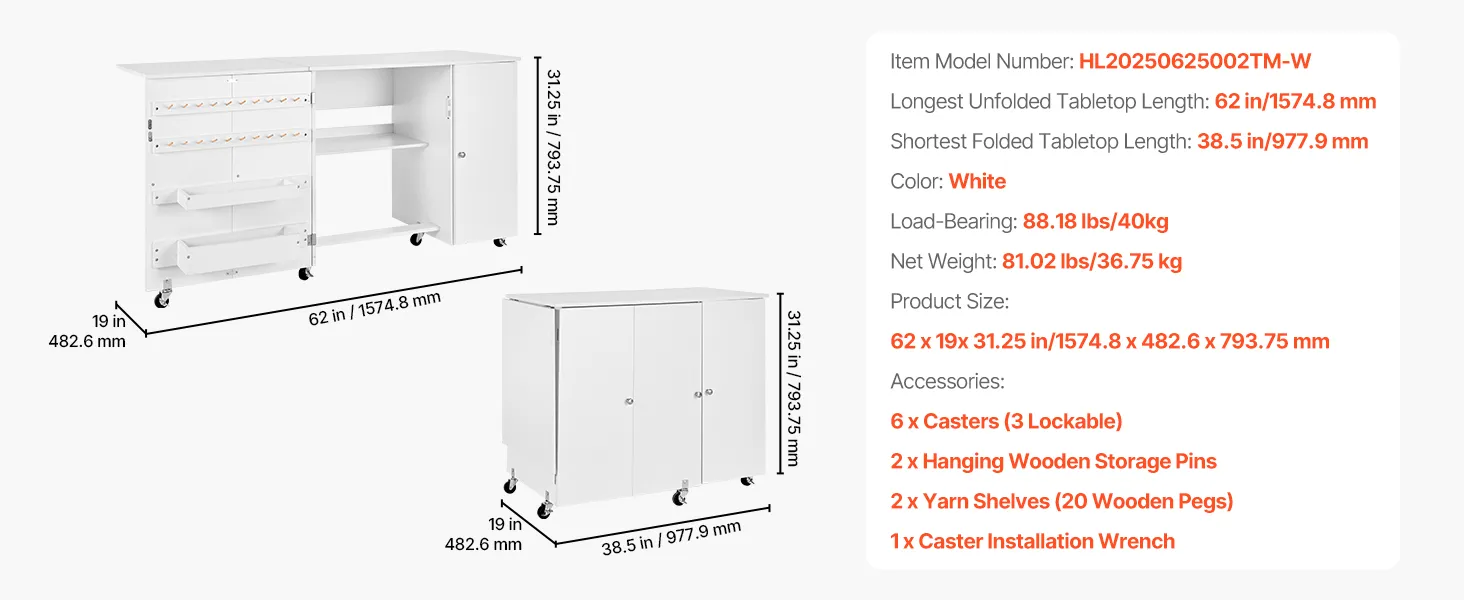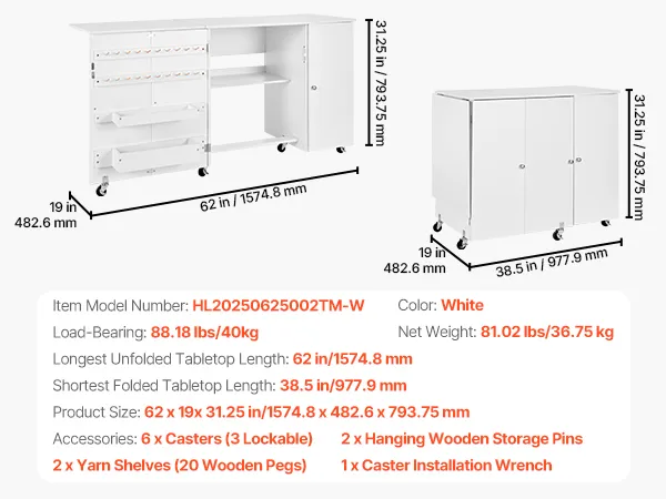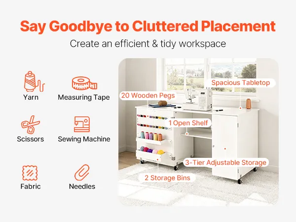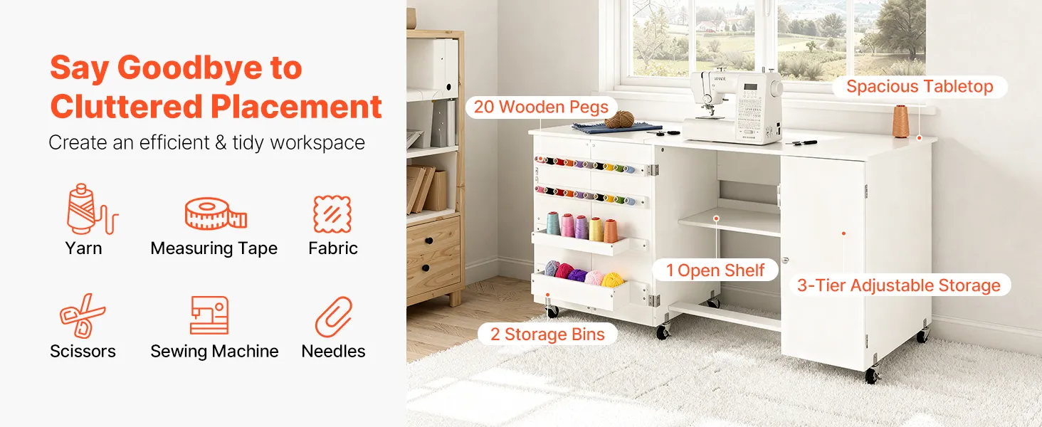 Reichlich Stauraum: Dieser Nähtisch verfügt über eine 62 x 19 Zoll (1574,8 x 482,6 mm) große Arbeitsfläche, 3-stöckiges Lager, 2 Lagerbehälter, 20 Holzklammern und 1 offenes Regal. Er ermöglicht das einfache Sortieren und Aufbewahren von Nähwerkzeugen und -materialien, hält die Arbeitsfläche sauber und erleichtert das Nähen