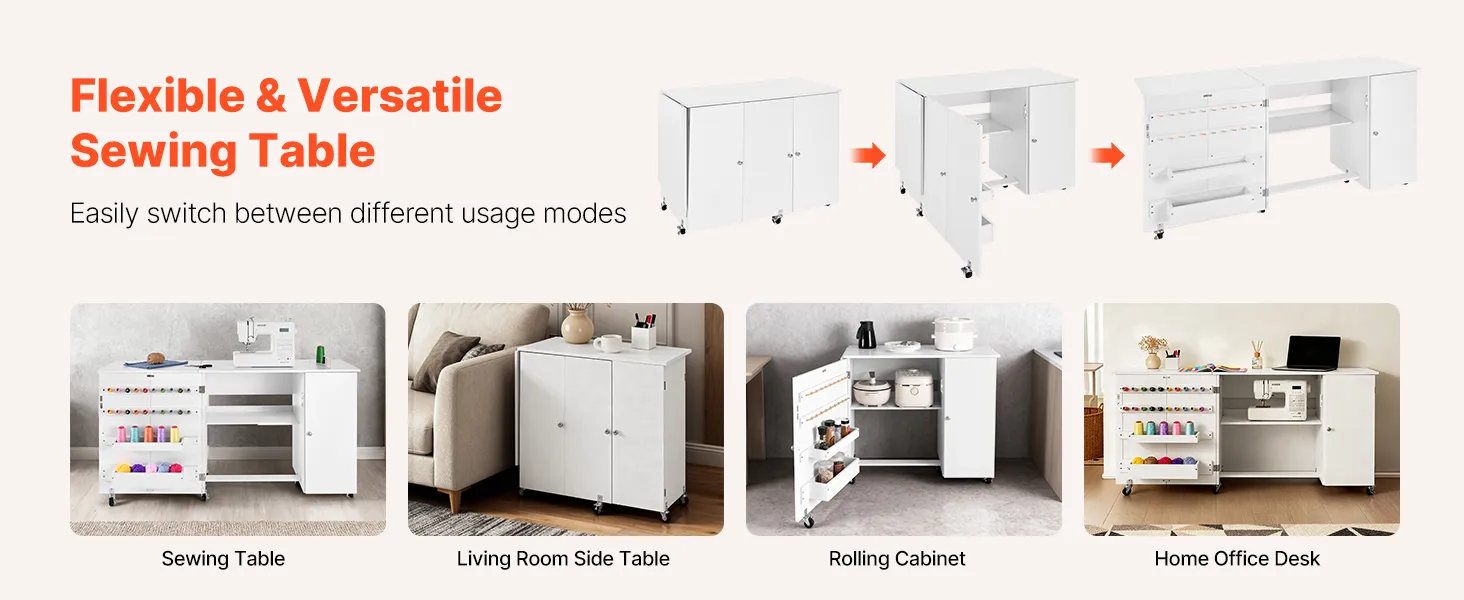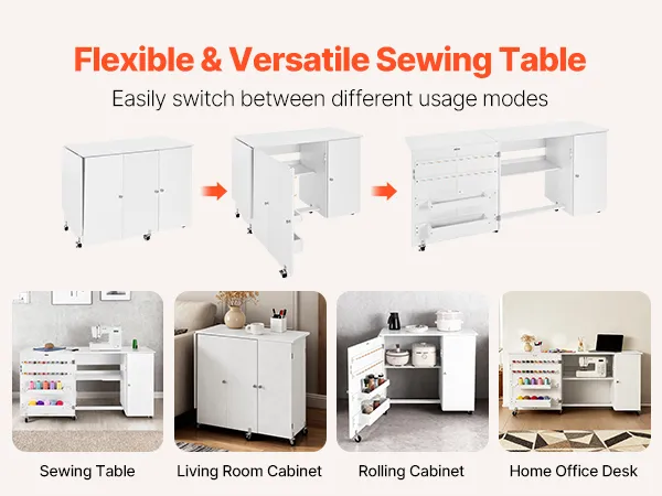 Dank seines klappbaren Designs ist dieser Nähtisch nicht nur ein Nähtisch, sondern lässt sich auch leicht in einen Beistelltisch verwandeln, was ihm Funktionalität und Schönheit verleiht. Er dient auch als drehbarer Schrank für praktische Aufbewahrung oder als Schreibtisch für das Homeoffice, der Ihre tägliche Arbeit und Ihr Studium erleichtert.