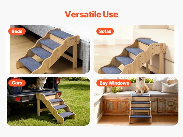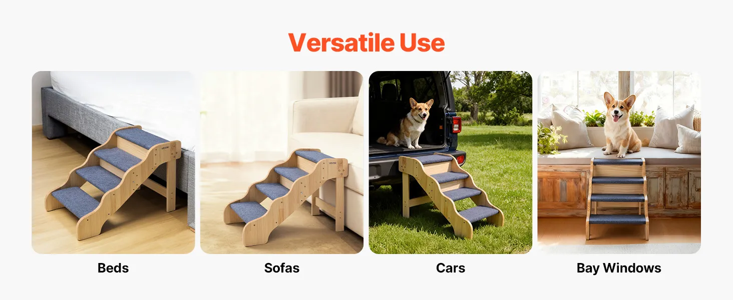Vielseitiges 4-Stufen-Design: Diese 4-stufige Holztreppe ist ideal für kleine bis mittelgroße Hunde, ältere Tiere oder Haustiere mit eingeschränkter Beweglichkeit, um sicher und bequem Betten, Sofas oder Autositze zu erreichen.