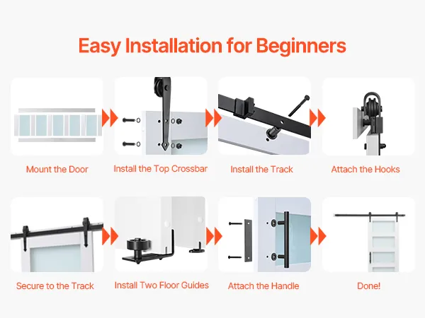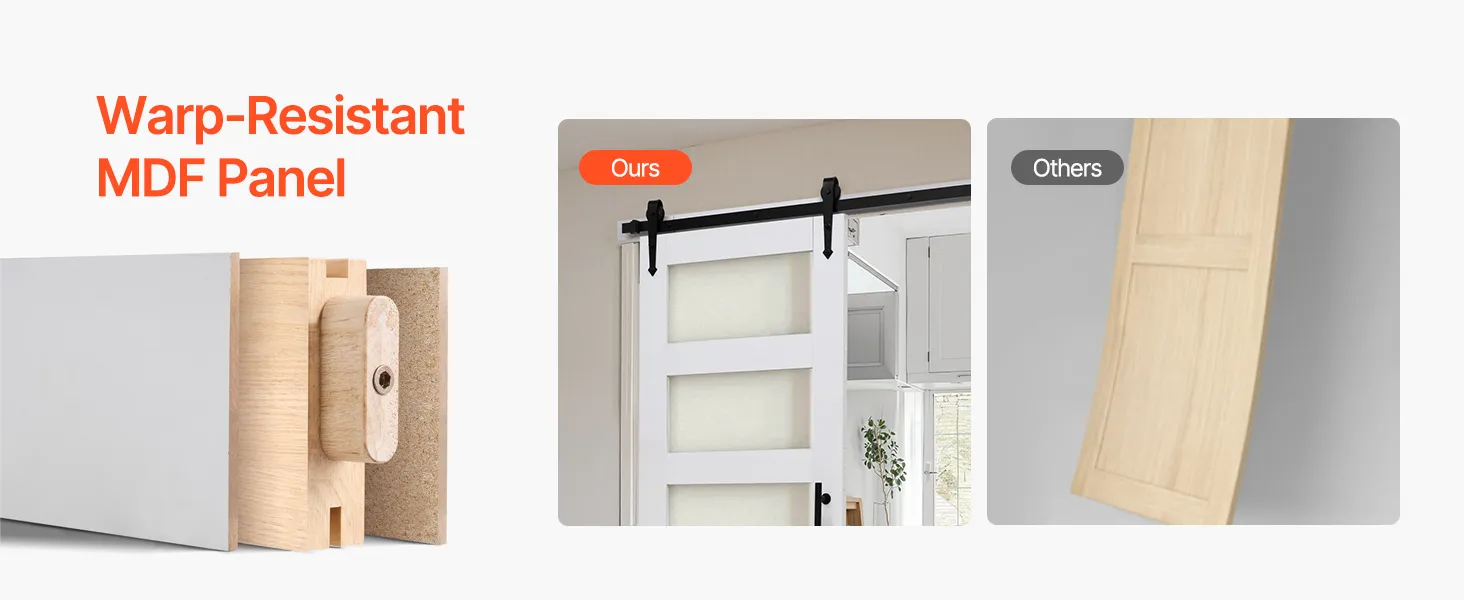 Verbesserte obere Querstrebe: Das Scheunentor-Set passt in dicke Türrahmen, vermeidet Kollisionen und schützt den Rahmen beim Schieben. Die Querstrebe lässt sich beim Bohren leicht ausrichten und schützt Ihre Wände besser. Dieses Design verleiht Ihrer Wohnkultur eine raffinierte Note