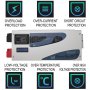 Mehrere Schutzfunktionen: Kurzschlussschutz, Unterspannungsschutz, Überspannungsschutz, Übertemperaturschutz, Überlastschutz und Überstromschutz.