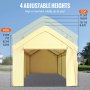 • Einstellbare 4-Höhen-Optionen: Es gibt 4 Optionen für die Seitenhöhe für dieses Schutzzelt, nämlich 5,8 Fuß (ca. 177 cm), 6,3 Fuß (ca. 192 cm), 7 Fuß (ca. 213 cm) und 7,5 Fuß (ca. 229 cm), entsprechend Spitzenhöhe 9,6 Fuß (ca. 293 cm), 10,1 Fuß (ca. 308 cm), 10,8 Fuß (ca. 329 cm) und 11,3 Fuß (ca. 344 cm). Sie können eine geeignete Höhe für alle Ihre Bedürfnisse wählen. Egal, ob Sie Ihre Autos oder Boote aller Größen schützen oder einen schattigen Platz zum Sammeln einrichten möchten, dieser Carport aus Segeltuch reicht aus.