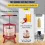 Diese Obstweinpresse im traditionellen Stil ist perfekt für die Herstellung von Wein, Fruchtsäften, Apfelwein und anderen individuell gemischten Getränken. Es ist sinnvoll, Ihre wertvollen Früchte während der Erntezeit zu behandeln. Zögern Sie nicht, eine Tasse hausgemachten, nahrhaften und zusatzfreien Saft aus Früchten zu trinken, die sich in einem natürlich reinen oder raffinierten Zustand befinden. Behandeln Sie Ihren Körper richtig und beginnen Sie, gesünder zu leben. Es ist Zeit, Ihre Ernte auszutrinken und sich erfrischt zu fühlen.