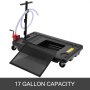 OldFe oil drain pump 17 L, oil drain pan with 244 cm long hose, oil collection device with 4 robust 10 cm swivel casters and T-shaped long handle, for draining oil or antifreeze oil