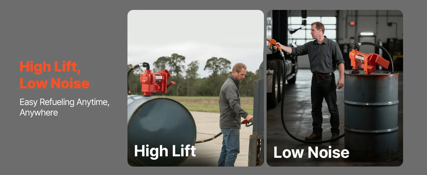 Mit einer beeindruckenden maximalen Förderhöhe von 11,28 m (37 Fuß) ist diese Dieselkraftstoff-Transferpumpe ideal für den Nachtbetrieb oder lärmempfindliche Umgebungen und liefert effizient Kraftstoff, ohne den Betrieb zu unterbrechen.