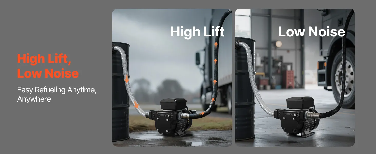 Mit einer beeindruckenden maximalen Förderhöhe von 13,7 m (45 Fuß) ist diese Dieselkraftstoff-Transferpumpe ideal für den Nachtbetrieb oder lärmempfindliche Umgebungen und liefert effizient Kraftstoff, ohne den Betrieb zu unterbrechen.