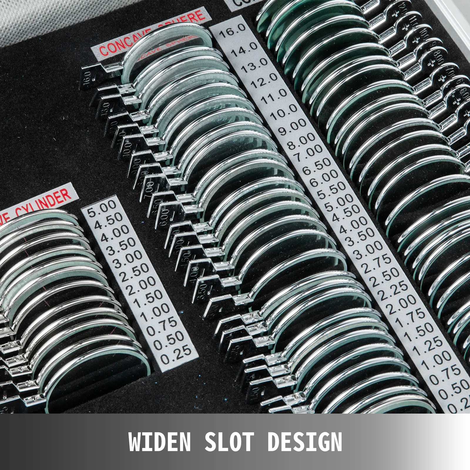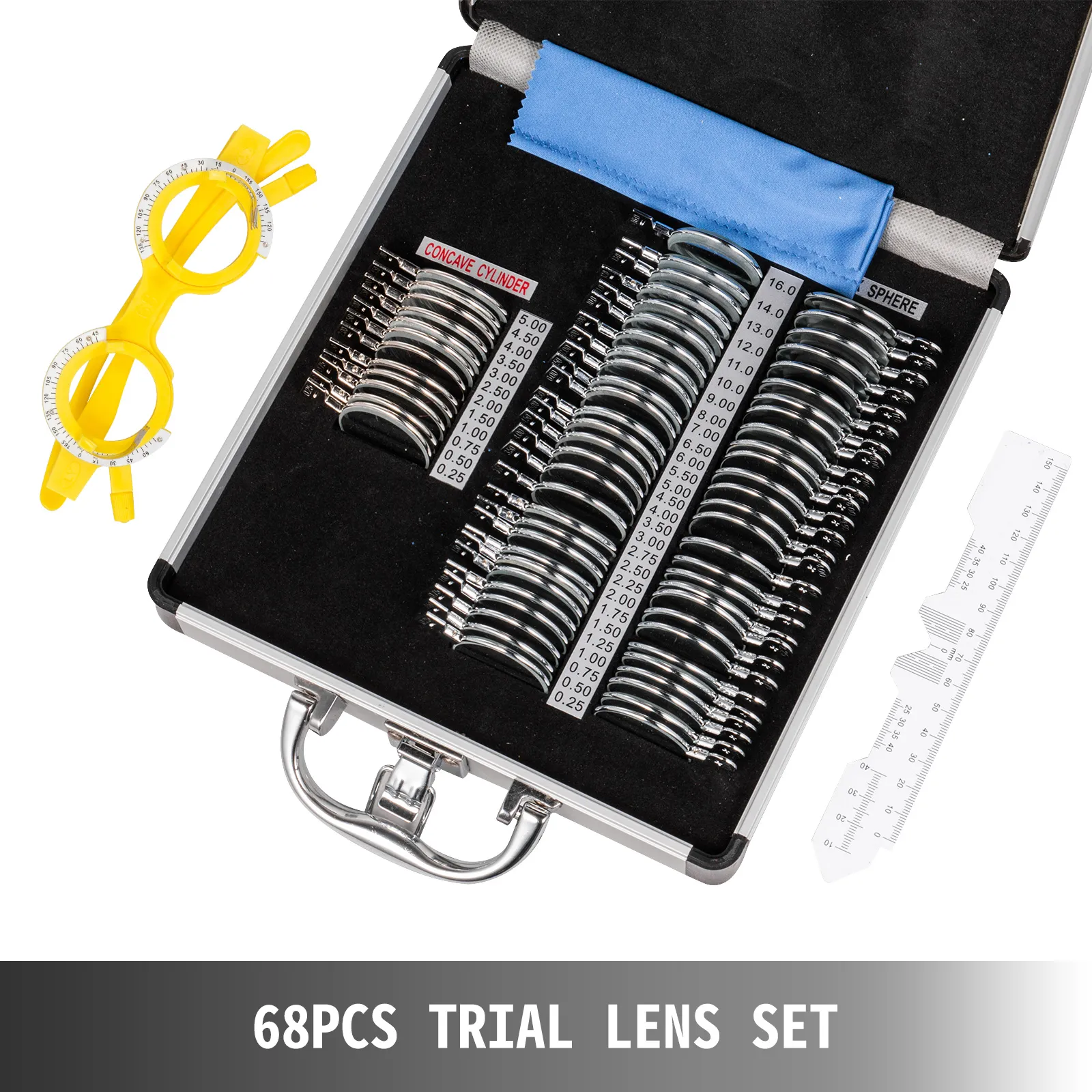 Das 68-teilige Optometrie-Versuchsobjektiv verfügt über eine große Blende, ein weites Sichtfeld und eine Aufbewahrungsbox aus Aluminium zur sicheren Aufbewahrung. Das Versuchslinsenset wird häufig von Augenärzten und Optikern in Krankenhäusern verwendet, um die Brechungsbedingungen von Menschen zu überprüfen: Hyperopie, Kurzsichtigkeit, Presbyopie, Astigmatismus oder Farbenblindheit.