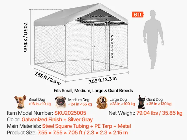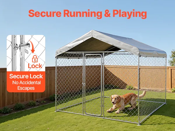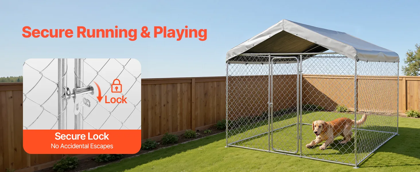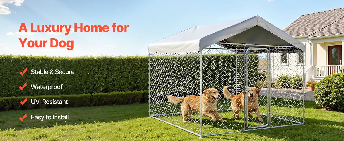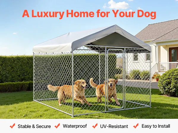 VEVOR Hundezwinger, 2,3 x 2,3 x 2,15 m, Hundehütte mit Sicherheitsschloss, Outdoor Hundehaus mit UV-Beständiger & Wasserdichter Dachabdeckung, Robuste Hundegehege/Auslauf für Große Hunde
