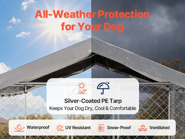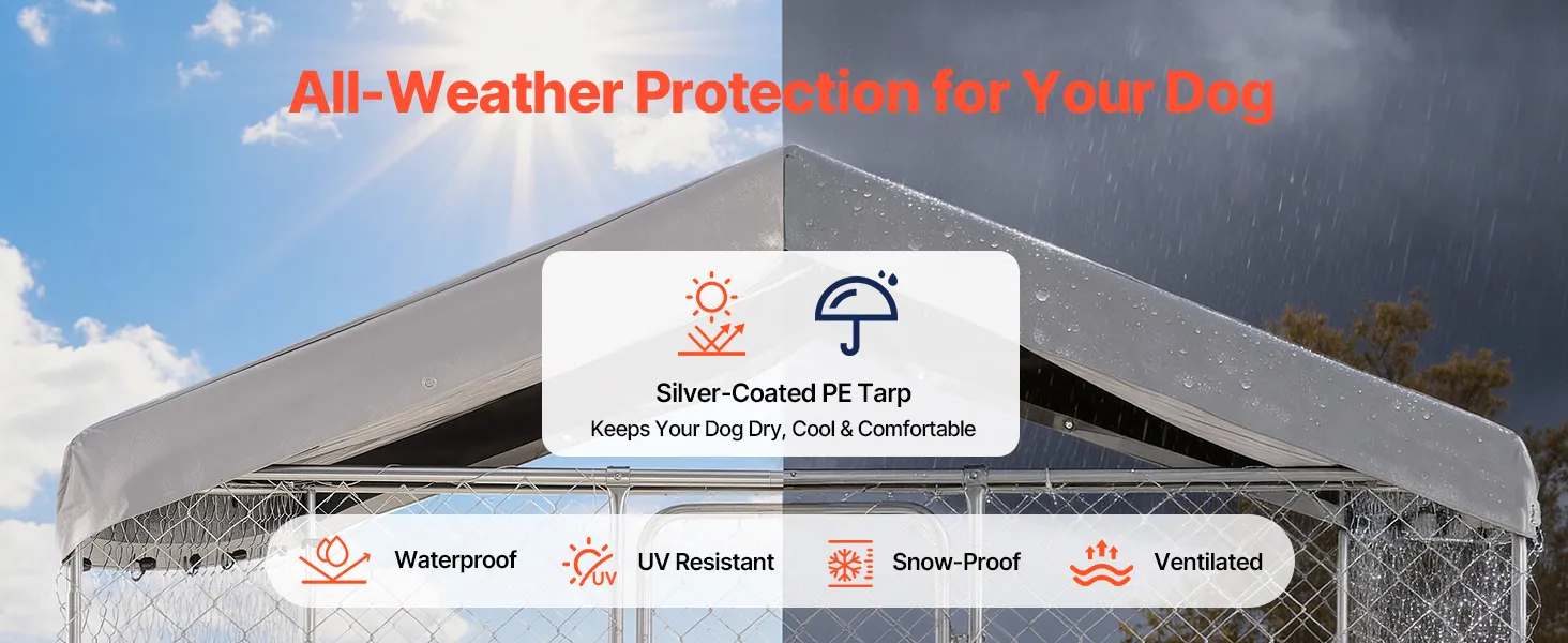 Das große Hundehaus ist mit einem PE-Planendach ausgestattet, das Regen und UV-Strahlen abhält und so umfassenden Schutz für Ihre Haustiere bietet.