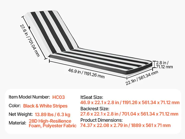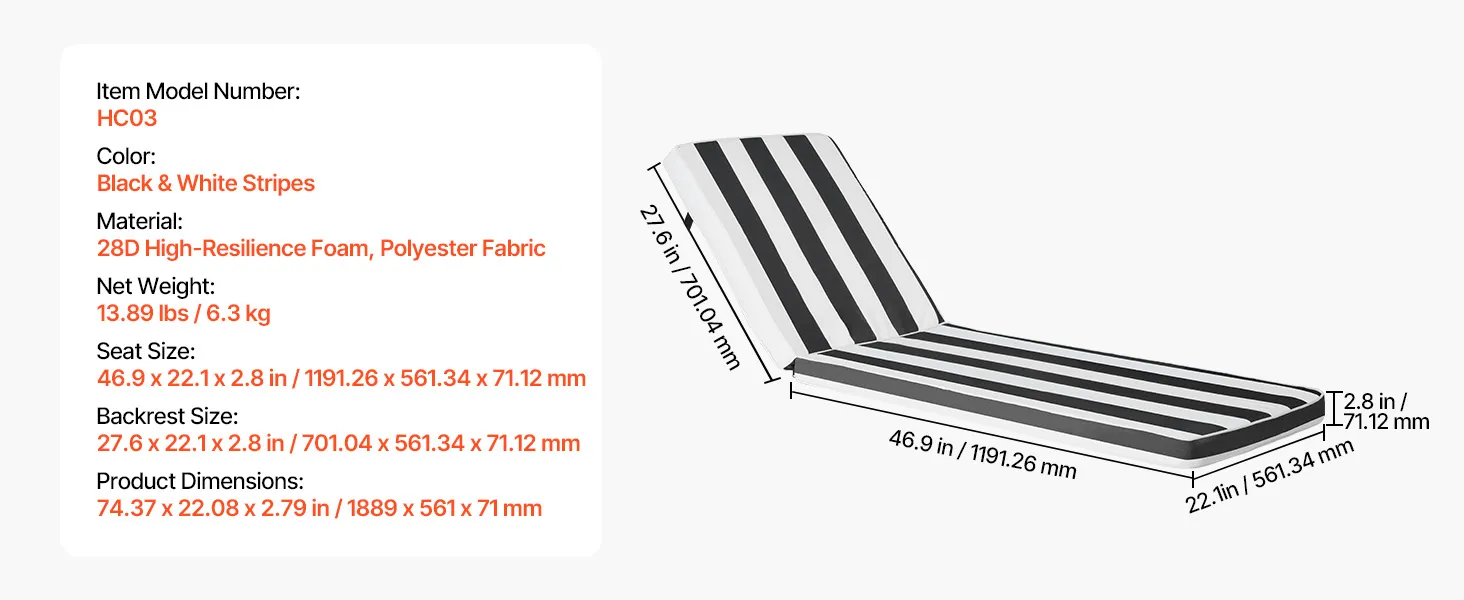 Universelle Passform: Diese Liegenauflagen für den Außenbereich hat eine Sitzfläche von 1191,2 x 561,3 x 71,1 mm und eine Rückenlehnengröße von 701,04 x 561,34 x 71,12 mm und ist für die meisten Standard-Liegesessel geeignet. Es bietet Ganzkörperunterstützung und dauerhaften Komfort. Für eine optimale Passform messen Sie Ihren Sessel bitte vor dem Kauf.
