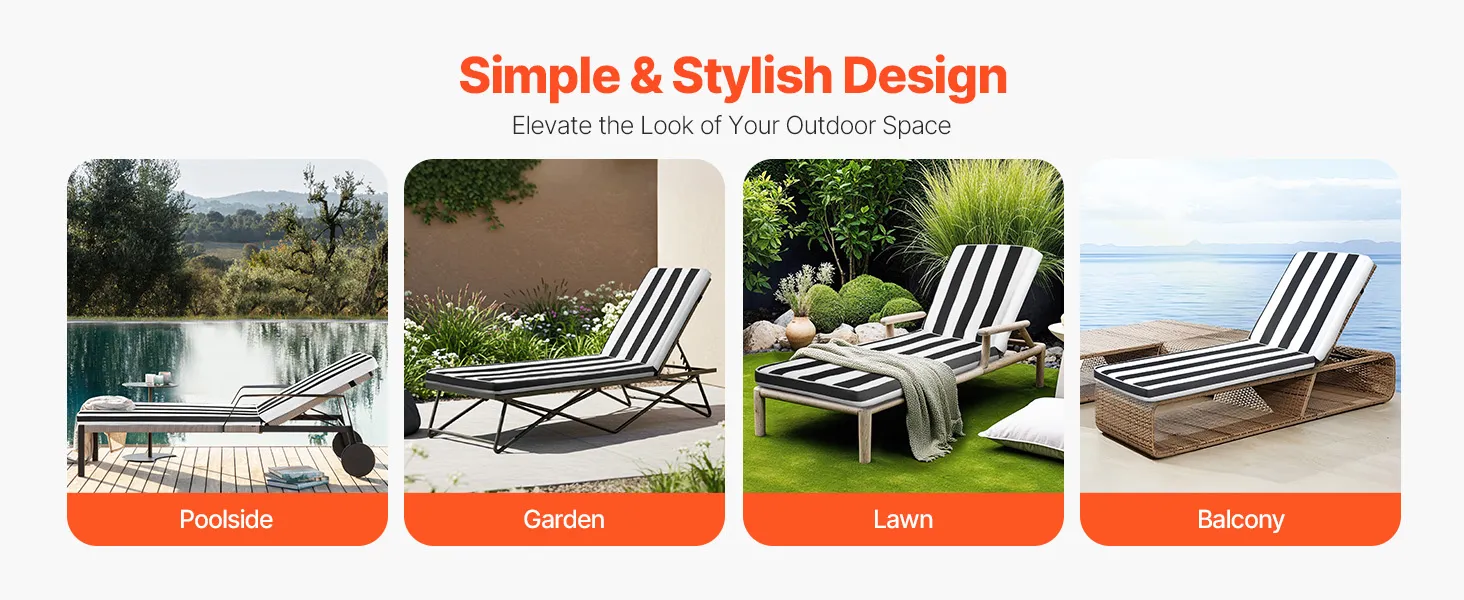 Vielseitig einsetzbar im Freien: Unsere Deckchair-Auflagen eignen sich ideal für Terrassen, Gärten, zum Entspannen am Pool oder auf dem Deck. Wo auch immer Sie sind, dieses Kissen verleiht Ihrem Außenbereich Komfort und Stil.