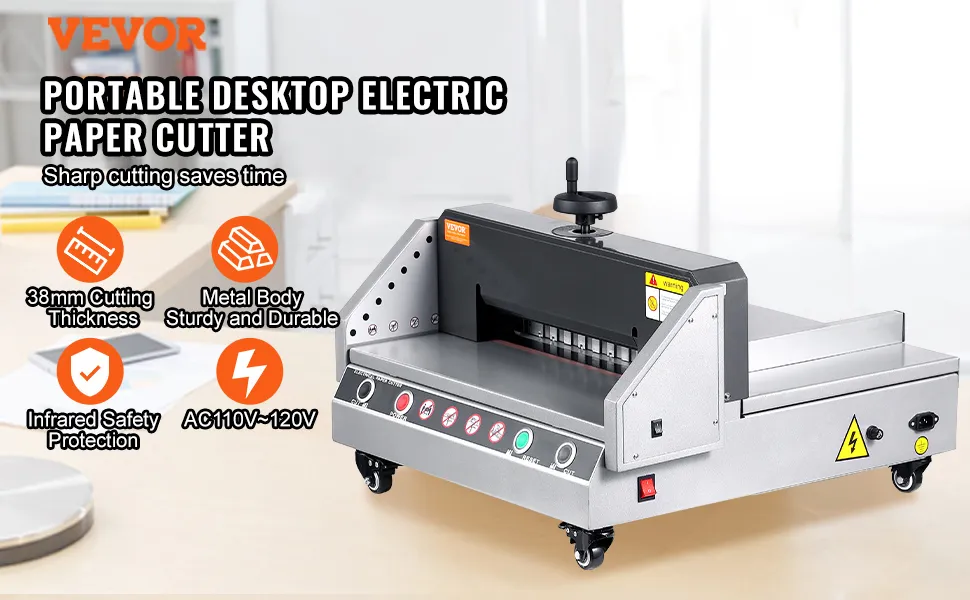 VEVOR elektrischer Papierschneider (330,2 mm Schnittbreite / 4 cm Schnittstärke), Desktop-Papierschneidemaschine mit Tastensteuerung, Papierschneider für Büro Schule Druckerei, Papier Schneiden