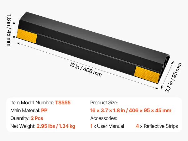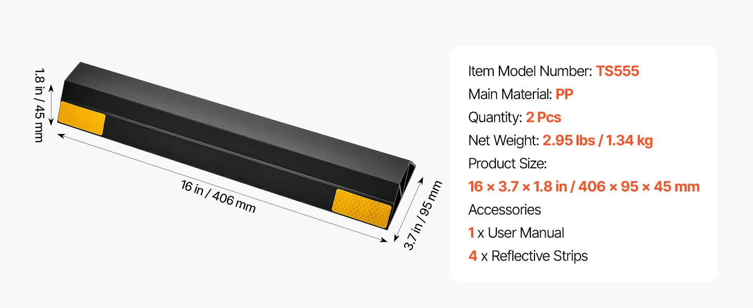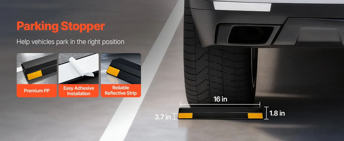 Einfaches Parken: Unsere zweiteiligen Parkstopper messen ca. 16 x 3,7 x 1,8 Zoll (406 x 95 x 45 mm) und eignen sich für Pkw, Lkw, Anhänger, Wohnmobile und sogar kleine Flugzeugreifen. Sie erleichtern das Parken, vermeiden Kollisionen und schützen Ihr Fahrzeug vor Schäden