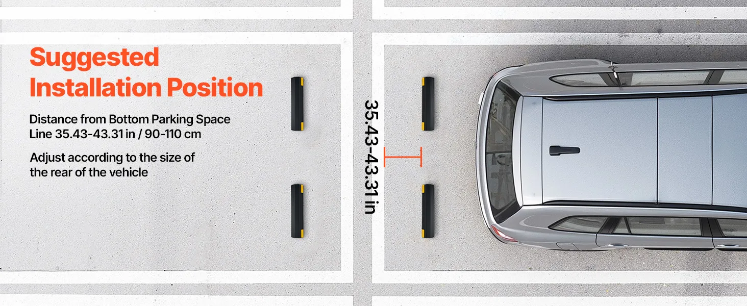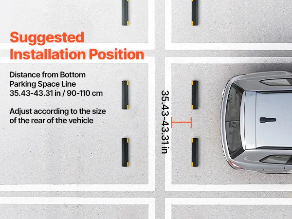 Empfohlene Installation 90–110 cm von der unteren Parklinie entfernt. Unser Parkstopper kann an die Größe des Fahrzeughecks angepasst werden. Durch die präzise Installation wird verhindert, dass das Fahrzeug beim Rückwärtsfahren gegen die Wand stößt.