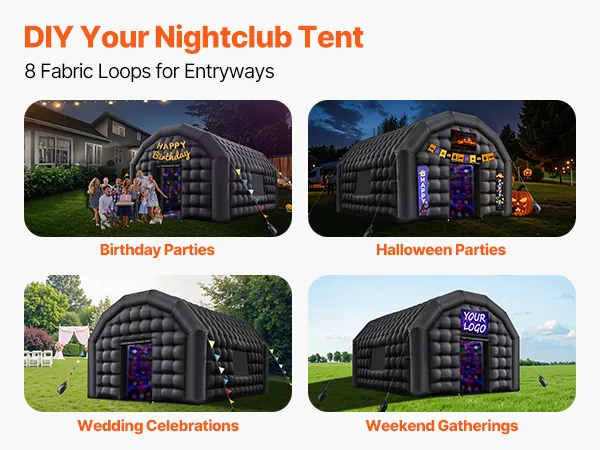 Mit 8 Stoffschlaufen für den Türrahmen können Sie Ihren aufblasbaren Nachtclub passend zu Geburtstagen, Hochzeiten, Halloween-Partys oder Wochenendveranstaltungen dekorieren.