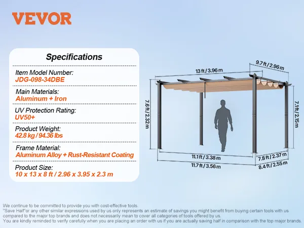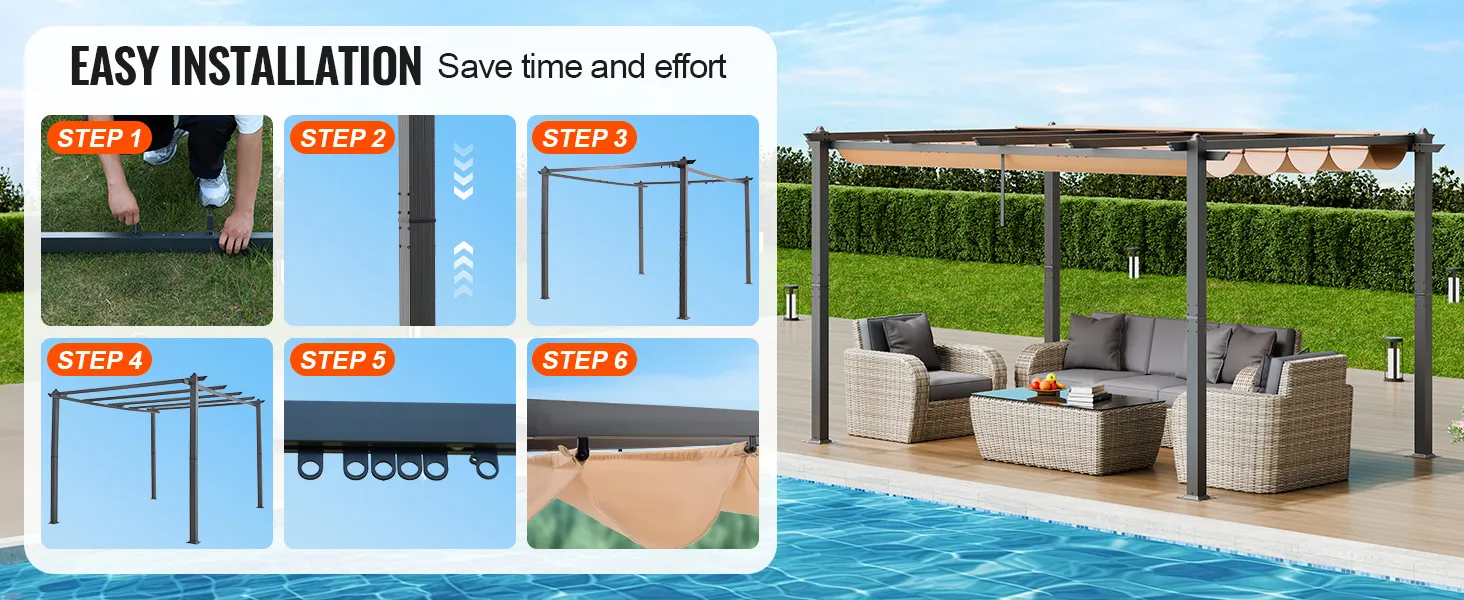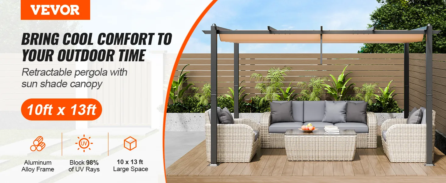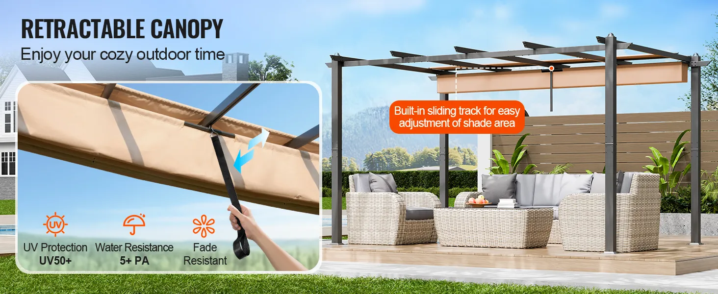 Genießen Sie Ihre gemütliche Zeit mit der einziehbaren Pergola von VEVOR