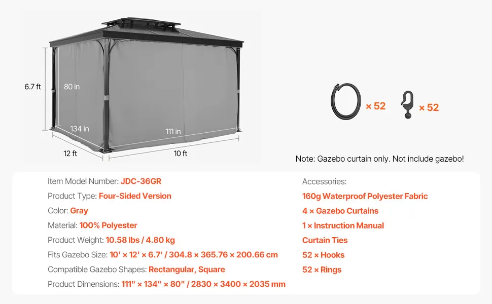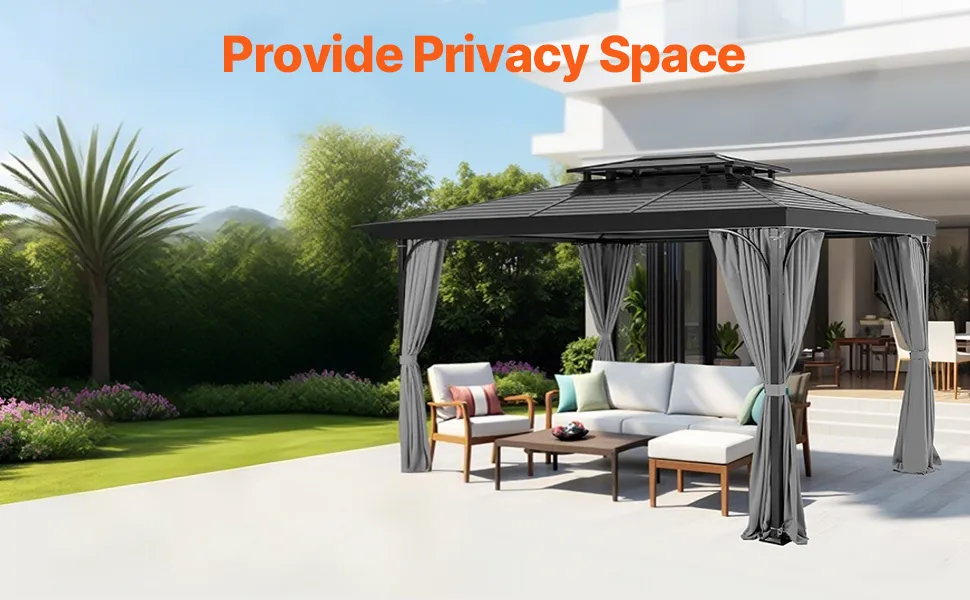 Passende Größe: Dieser Sichtschutzvorhang ist für Pavillons mit den Maßen 304,8 x 365,76 x 200,66 cm konzipiert und besteht aus 100 % Polyester für hervorragende Haltbarkeit und Sonnenschutz. Der doppelseitige Reißverschluss ermöglicht einfache Anpassungen von innen und außen, wodurch die Installation schnell und komfortabel wird und ein privater Außenbereich entsteht.