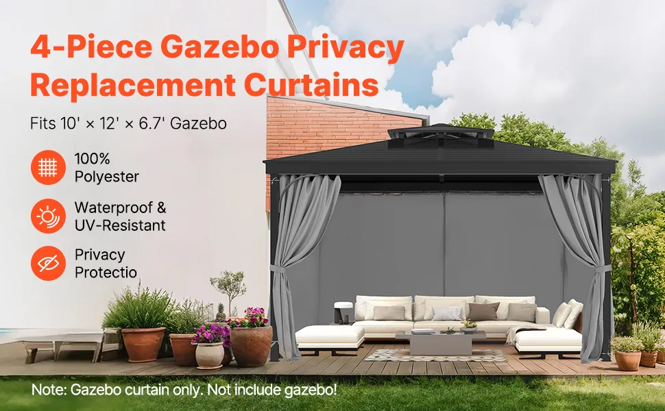 VEVOR Terrassenvorhang, 2830x3400x2035mm, Seitenwand-Sichtschutzvorhänge für Pavillons mit Reißverschlüssen, Sonnenschutzvorhänge als Ersatz für Terrassenüberdachung, nur Vorhänge, grau