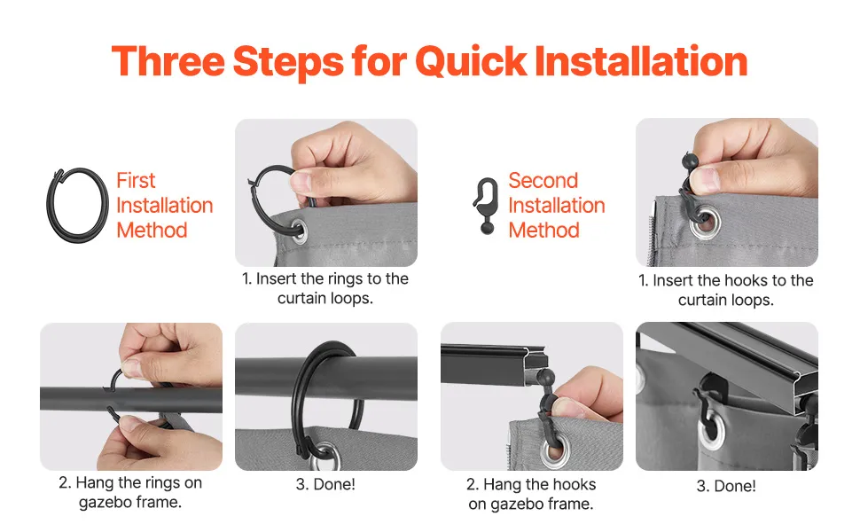 Dreiteilige Bänder: Dieser Sichtschutzvorhang für den Pavillon verfügt über ein dreiteiliges Bänderdesign für stabilen Rundum-Halt. Es hält den Vorhang oben, in der Mitte und unten sicher an seinem Platz, verhindert Verrutschen oder Flattern und schützt gleichzeitig effektiv Ihre Privatsphäre – ideal für die Innen- und Außendekoration.