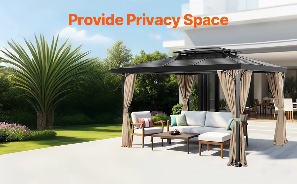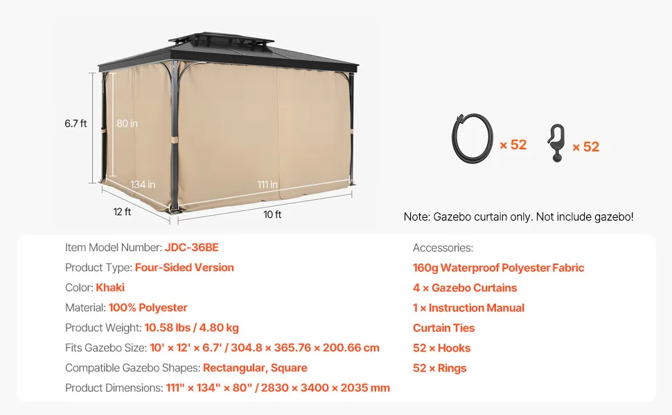 Passende Größe: Dieser Sichtschutzvorhang ist für Pavillons mit den Maßen 304,8 x 365,76 x 200,66 cm konzipiert und besteht aus 100 % Polyester für hervorragende Haltbarkeit und Sonnenschutz. Der doppelseitige Reißverschluss ermöglicht einfache Anpassungen von innen und außen, wodurch die Installation schnell und komfortabel wird und ein privater Außenbereich entsteht.
