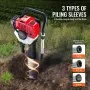 Three different sleeves: The pile driver comes with three different pile drivers (including sleeve diameters: 49 mm, 69 mm, and 100 mm). You can change the sleeves depending on the pile size. The hammerhead on the sleeve is extremely strong, making pile driving easy and efficient.