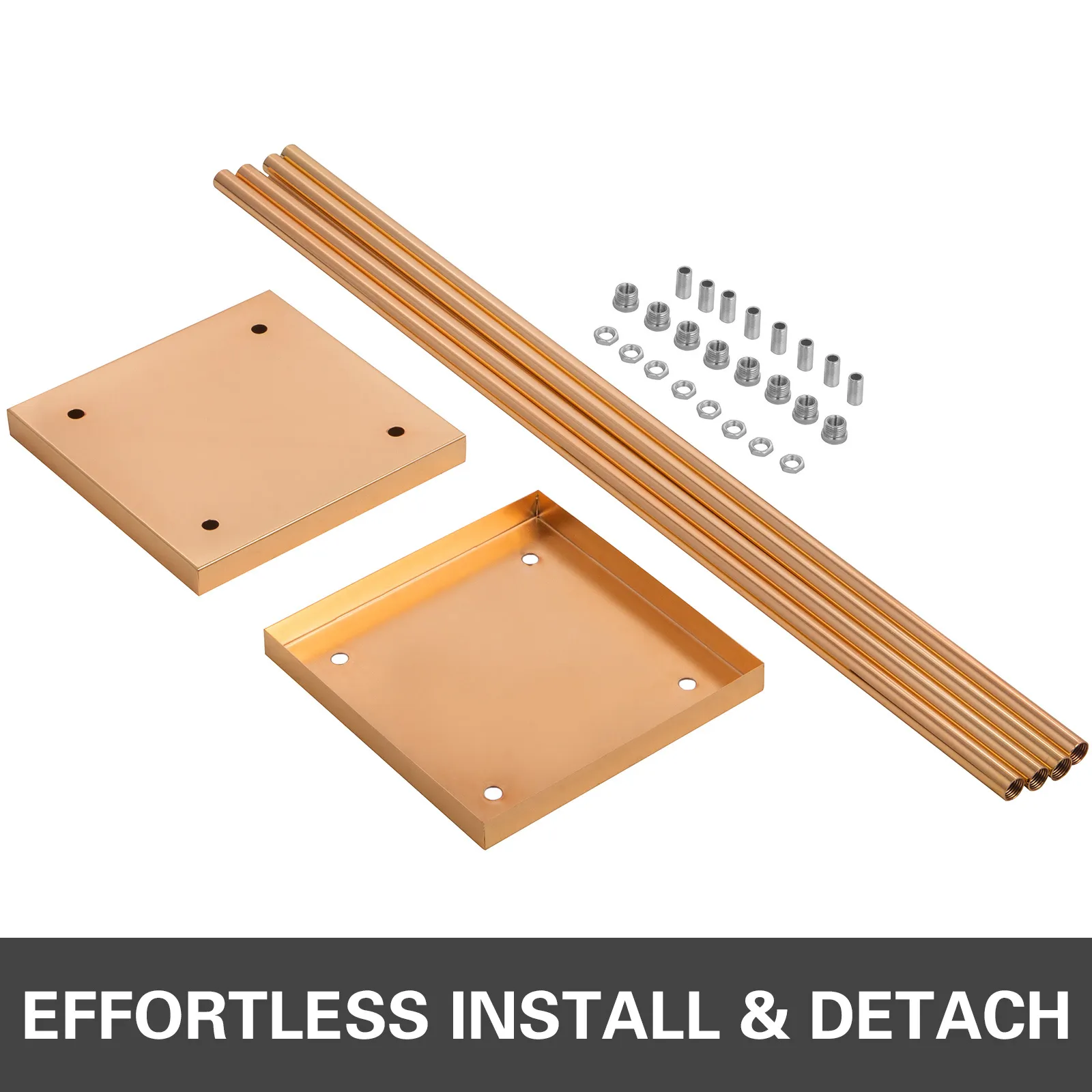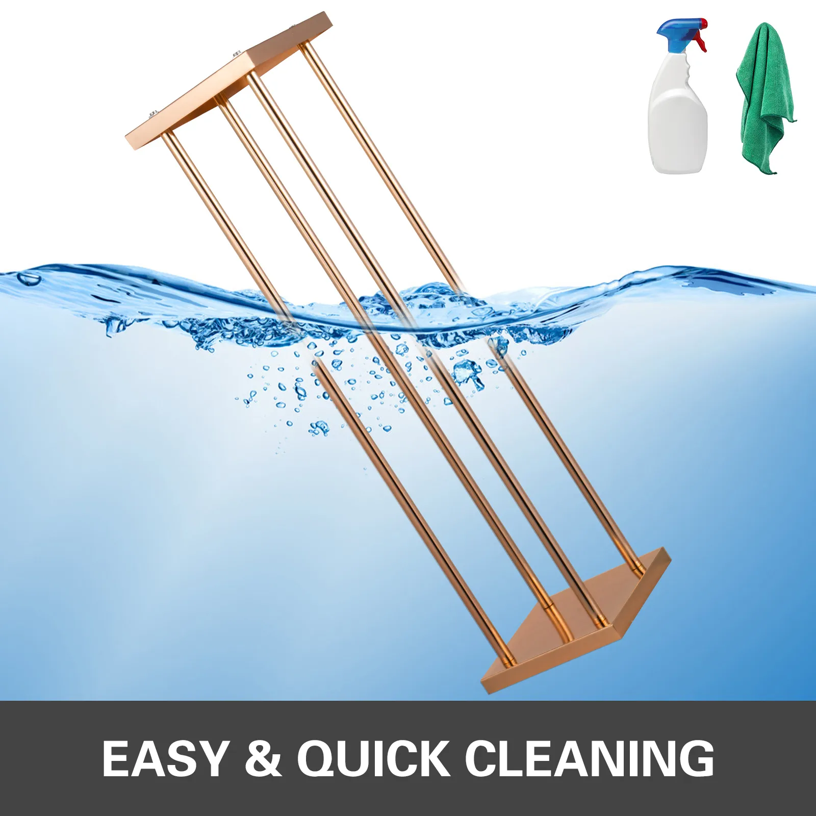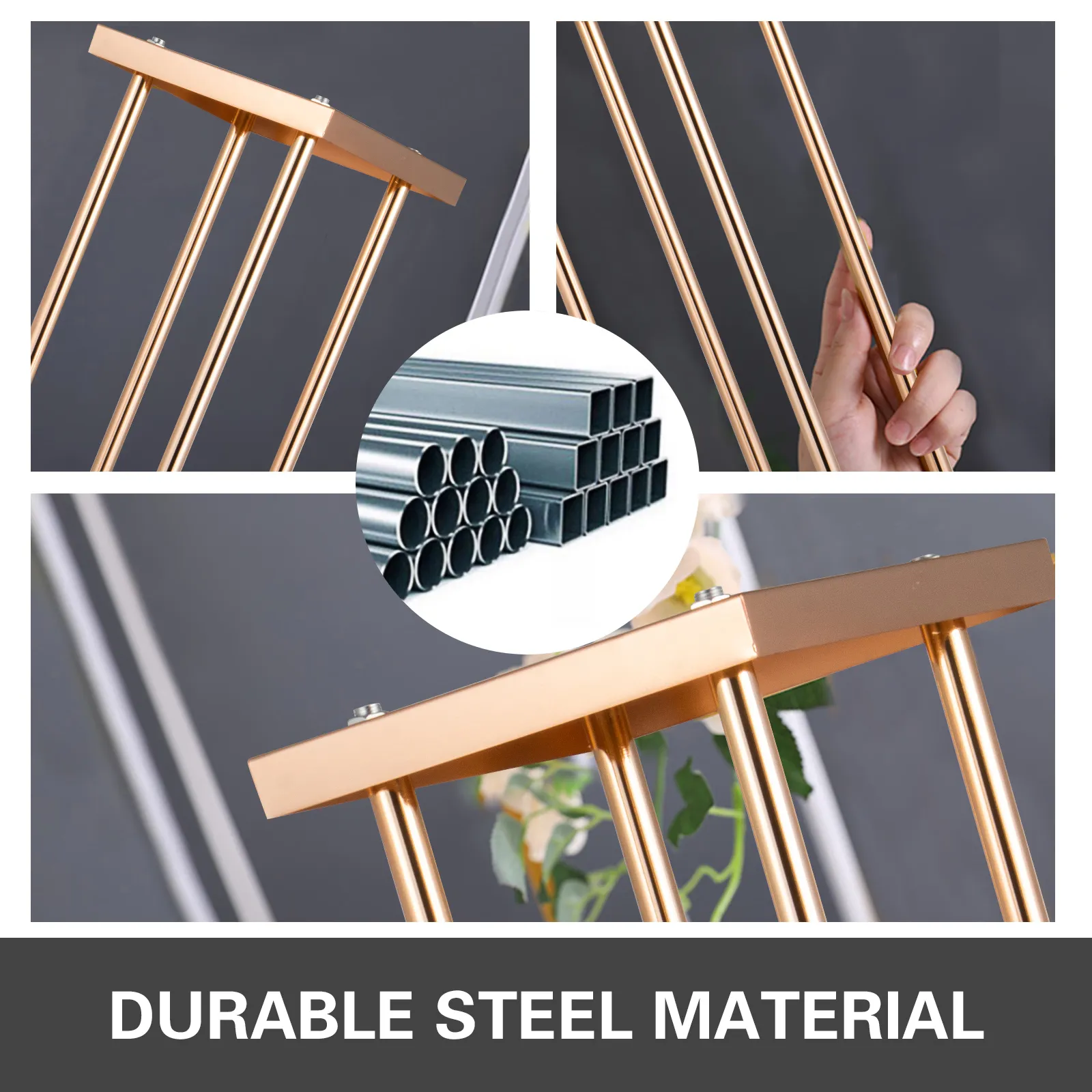 Dieser Hochzeitsblumenständer besteht aus rosegoldenem Stahl und zeichnet sich durch hohe Festigkeit und Rostschutz aus. Es ist nicht leicht, Farbe zu verlieren oder sich zu verformen.