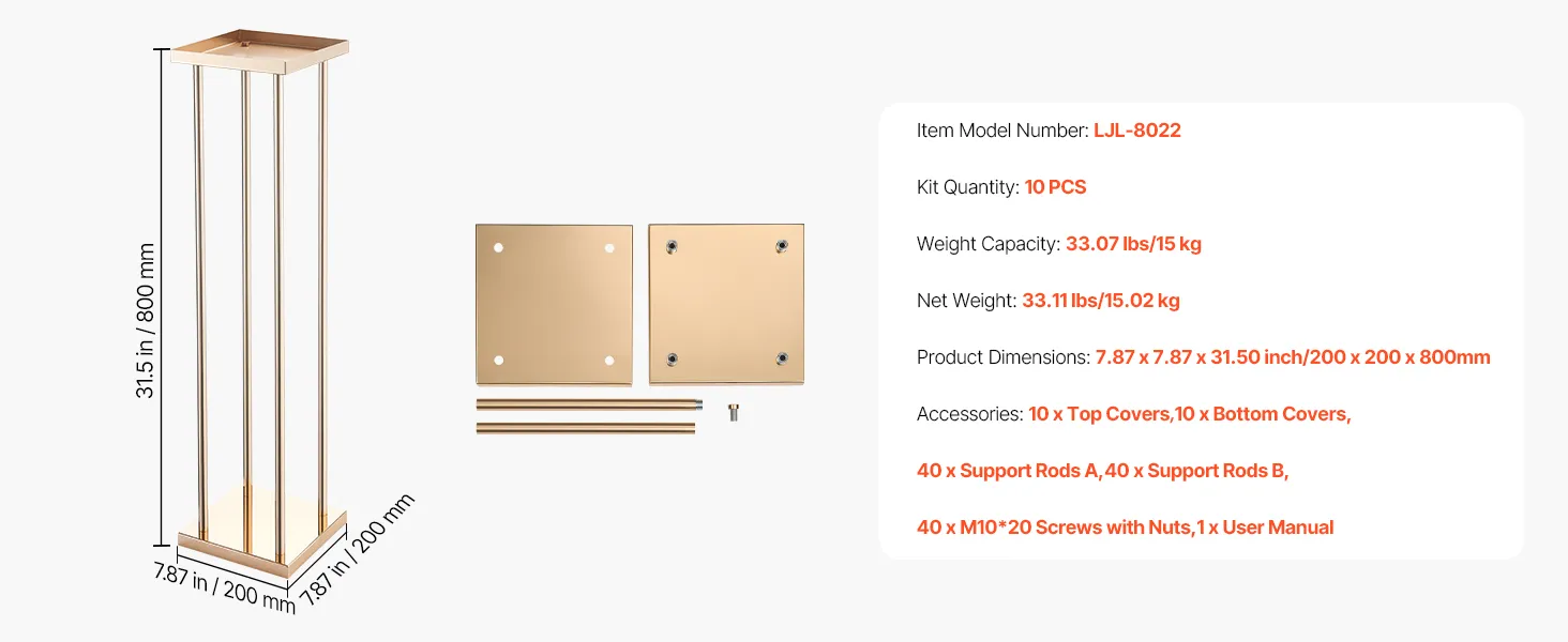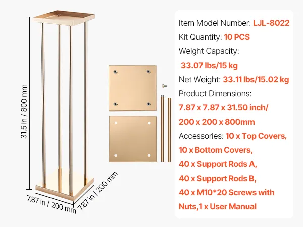 Zeitlose Eleganz: Dieser geometrische Tischaufsteller besticht durch sein klassisches Säulen-Würfel-Design, das das Gewicht gleichmäßig verteilt und für Stabilität sorgt. Mit einer maximalen Traglast von 15 kg hält er Dekorationen sicher und verleiht Hochzeiten, Partys und besonderen Feierlichkeiten eine elegante Note.
