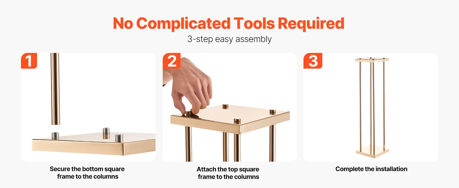 Komplettes Zubehör: Dieser hohe Blumenständer enthält alles benötigte Zubehör, sodass Sie keine zusätzlichen Käufe tätigen müssen. Verdeckte Doppelbefestigungen gewährleisten eine stabile und ordentliche Konstruktion und ermöglichen einen schnellen und effizienten Aufbau – ideal für Hochzeiten, Partys, Geburtstage oder zum mühelosen Dekorieren Ihres Zuhauses.