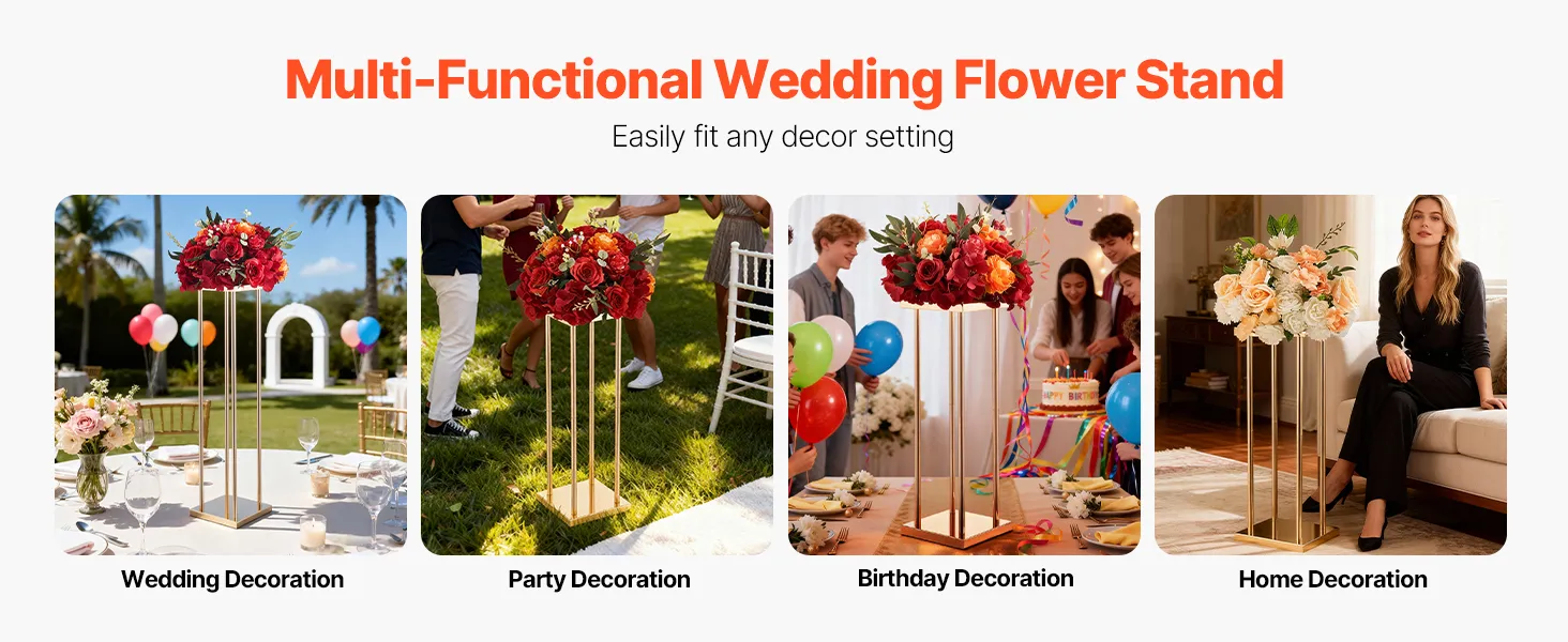 Robustes Gestell: Dank des stabilen, kaltgewalzten SPCC-Gestells und der doppelwandigen Paneele bietet dieser Blumenständer sicheren Halt und dauerhafte Eleganz. Er eignet sich ideal für Hochzeiten, Partys, Geburtstage oder als Dekoration für Ihr Zuhause und hält Blumen und Dekorationen sicher und langlebig.