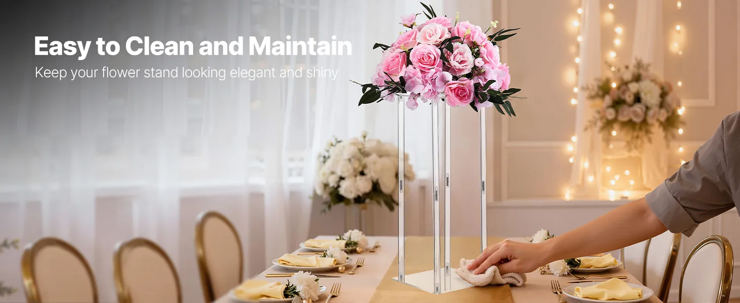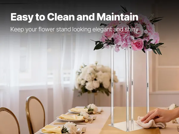 Dank seiner glatten Oberfläche lässt sich dieser Vasenständer mühelos reinigen und pflegen. Staub und Flecken lassen sich einfach abwischen, sodass er sein edles Aussehen und seinen dauerhaften Glanz behält – ideal für Hochzeiten, Partys, Geburtstage und als Dekoration für Ihr Zuhause.