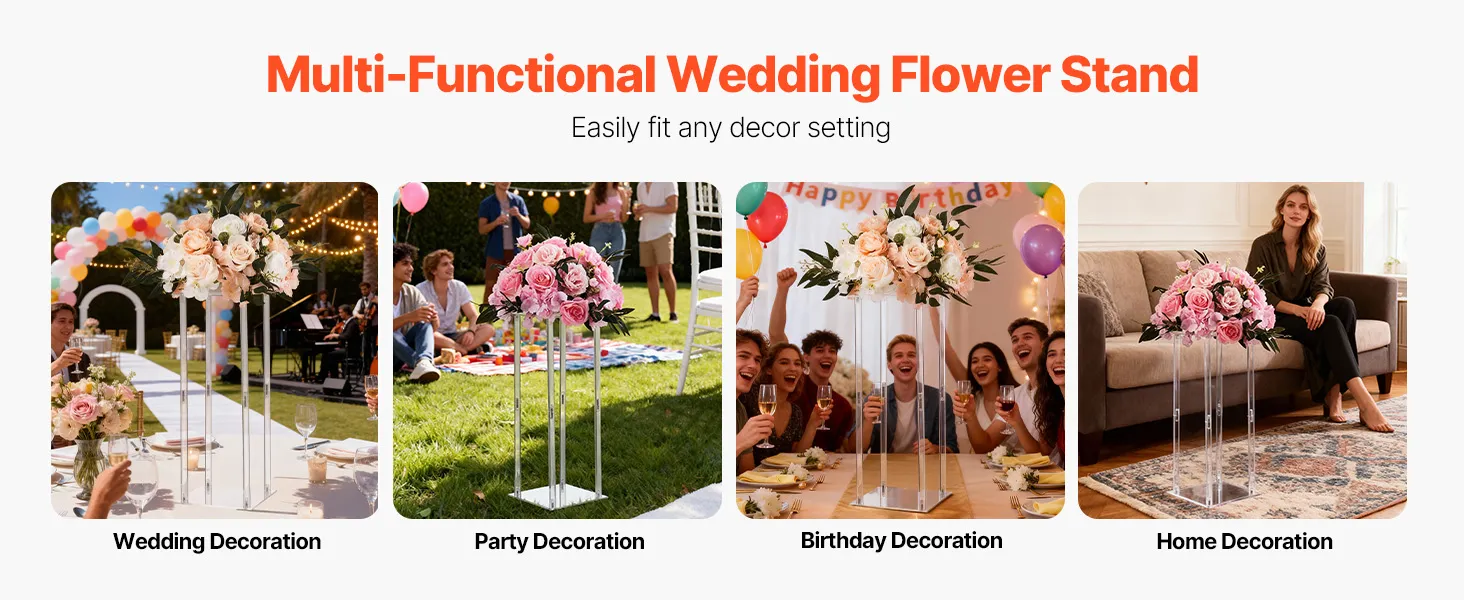 Der Blumenständer VEVOR eignet sich ideal für Hochzeiten, Partys, Geburtstage und den privaten Gebrauch. Dank seines eleganten Designs und seiner vielseitigen Einsatzmöglichkeiten fügt er sich harmonisch in verschiedene Einrichtungsstile ein und wertet jede Szene optisch auf und schafft ein stimmungsvolles Ambiente.
