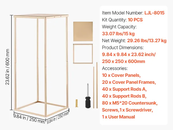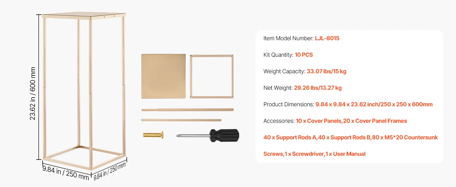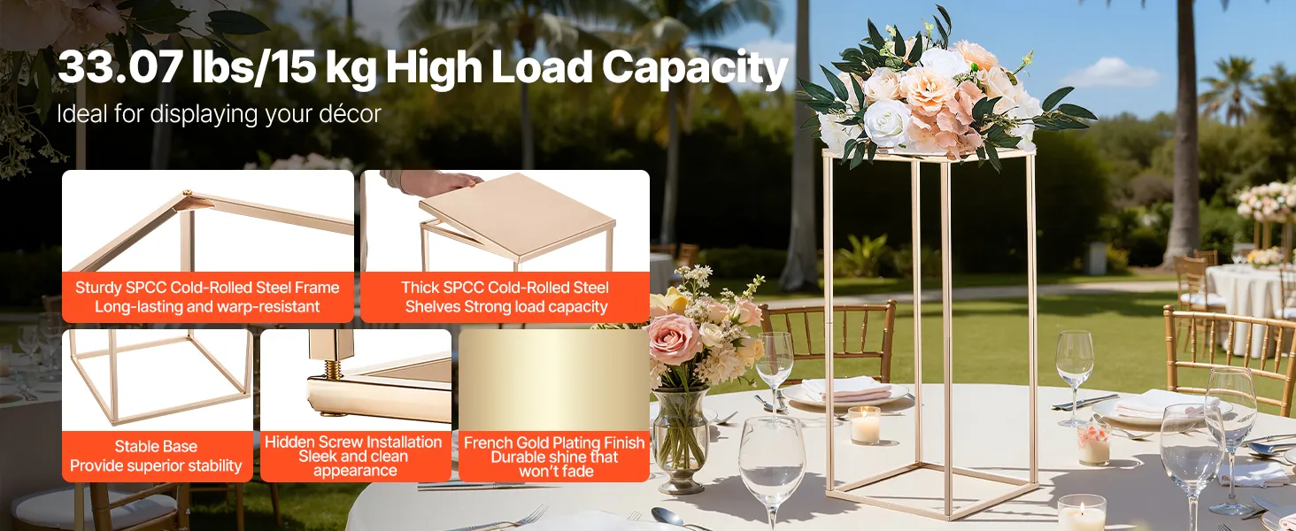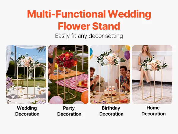 Dieser goldene VEVOR-Tischaufsteller eignet sich für verschiedene Anlässe wie Hochzeiten, Partys, Geburtstagsfeiern und als Dekoration für Ihr Zuhause. Mit seinem eleganten Design und seiner praktischen Funktion fügt er sich harmonisch in jedes Dekorationskonzept ein und ist eine hervorragende Wahl, um Ihren Wohn- oder Veranstaltungsraum zu verschönern.