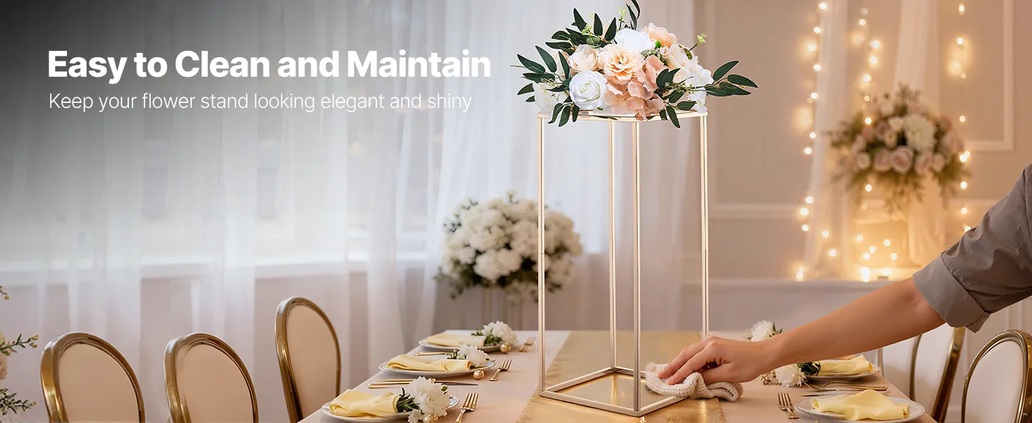Dieser Vasenständer besticht durch seine glatte und feine Oberfläche, die sich mühelos reinigen und pflegen lässt. Ob für den täglichen Gebrauch oder besondere Anlässe – Staub und Flecken lassen sich einfach abwischen, sodass der Ständer stets elegant aussieht und seinen Glanz behält.