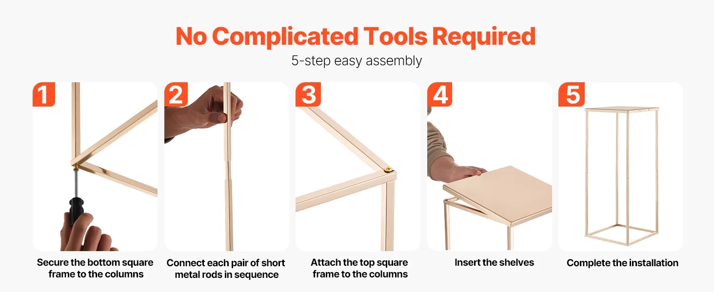 Für diesen Blumenständer benötigen Sie kein Spezialwerkzeug. Er lässt sich in wenigen Minuten mühelos und sicher aufbauen. Dank seiner einfachen Konstruktion gelingt der Aufbau selbst Heimwerker-Neulingen schnell und spart Ihnen Zeit und Mühe – und verleiht Ihrer Dekoration gleichzeitig einen charmanten Touch.