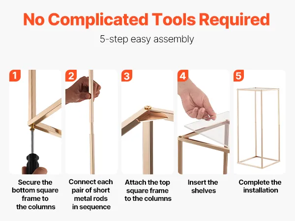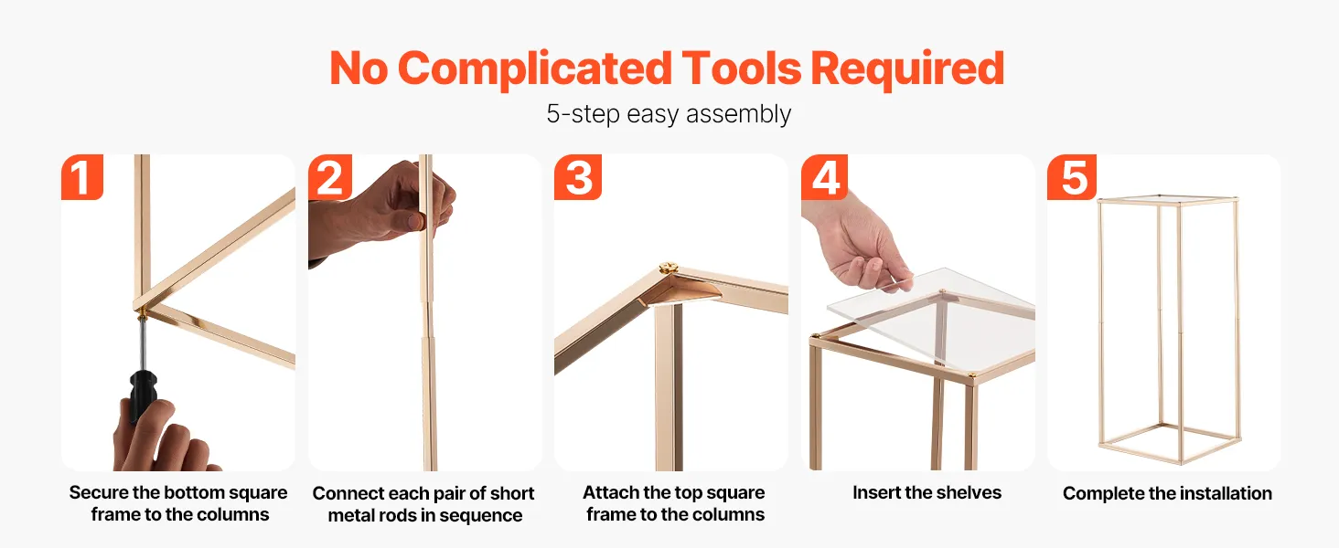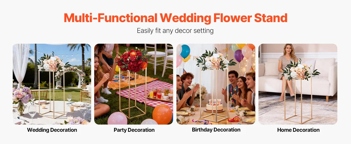 Der Aufbau dieses Blumenständers ist schnell und einfach und erfordert kein kompliziertes Werkzeug. Dank seines intuitiven Designs kann ihn jeder, auch Heimwerker-Anfänger, in wenigen Minuten aufbauen und so mühelos Blumen oder Dekorationen bei Hochzeiten, Partys, Geburtstagen oder anderen Feierlichkeiten zu Hause präsentieren.