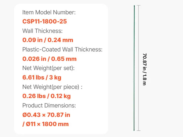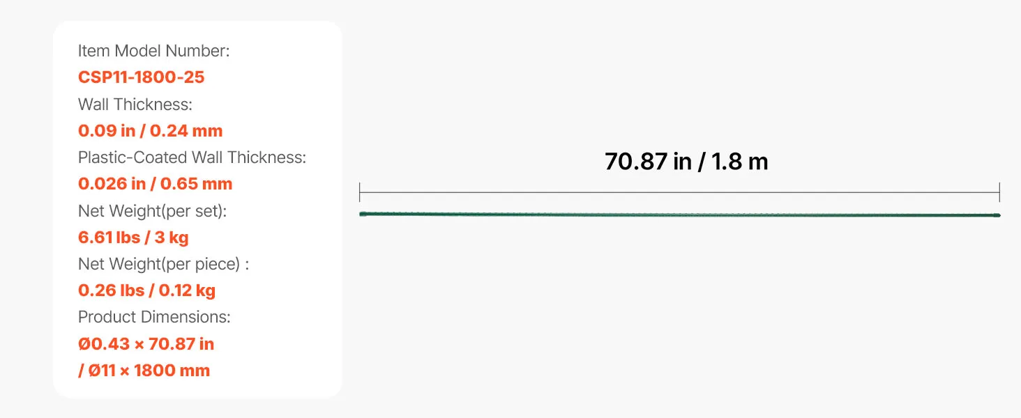 Ø0,43 x 70,87 Zoll / Ø11 x 1800 mm