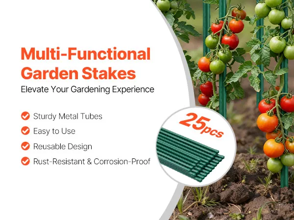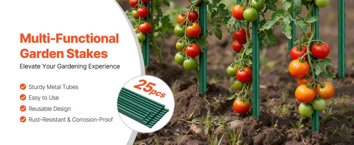 VEVOR Rankhilfe, 25er-Pack, Pflanzstab ⌀11x1800 mm, kunststoffbeschichtete Metall-Tomatenstäbe, Pflanzenstütze mit spitzem Ende & rutschfesten Noppen für den Anbau von Kletterpflanzen & Gemüse