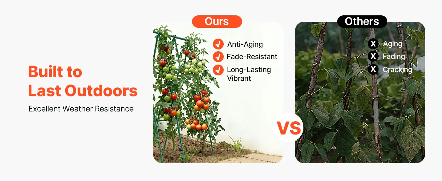 Wiederverwendbar und langlebig: Diese Pflanzenstäbe für Gartenpflanzen sind robust und langlebig. Nach der Ernte lassen sie sich leicht abnehmen, reinigen und platzsparend verstauen. Da kein jährlicher Ersatz nötig ist, reduzieren sie langfristig die Gartenkosten und den Abfall und ermöglichen so jahrelanges, kontinuierliches Pflanzen.