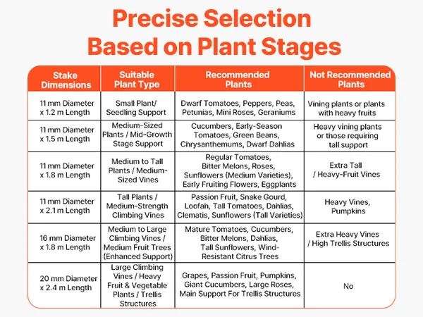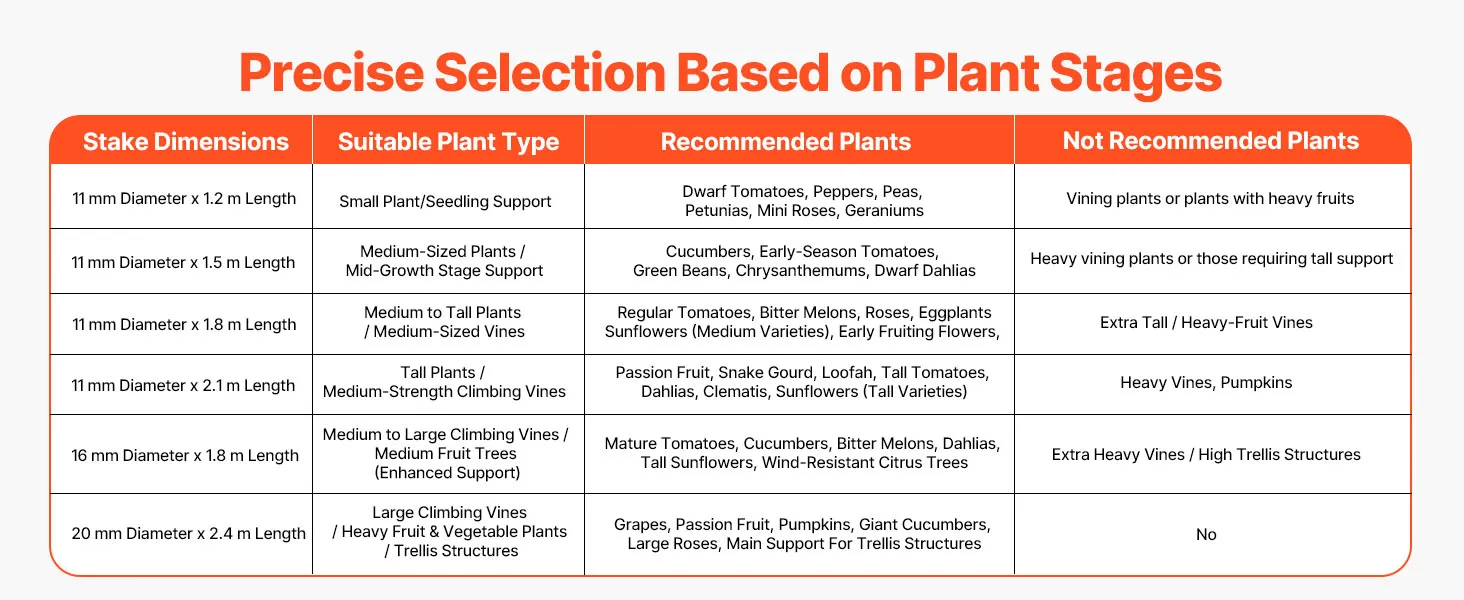 Diese hohen Gartenpfähle passen die Stütze individuell an die Bedürfnisse jeder Pflanze an, indem sie die passende Pfahlgröße für verschiedene Pflanzenarten auswählen. So wird ein Durchbiegen durch unzureichende Stütze oder zu hohen Druck vermieden und ein effizientes und zuverlässiges Gärtnern gewährleistet.