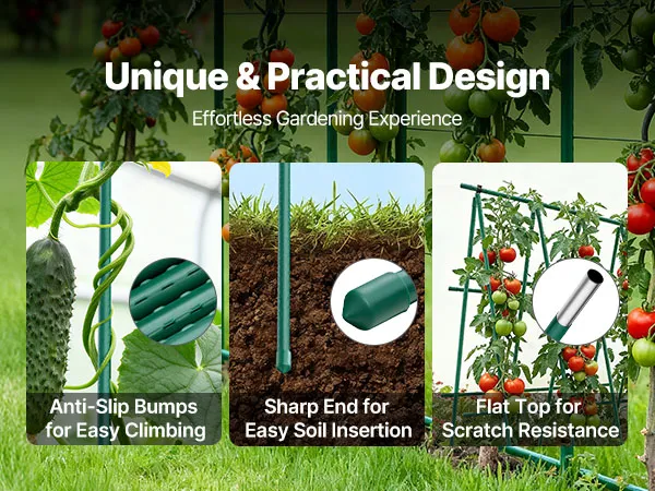 Einfache Anwendung: Kein kompliziertes Werkzeug erforderlich. Diese Pflanzenstützen haben eine Spitze zum einfachen Einstecken in die Erde und zum sicheren Verankern. Die rutschfesten Noppen verbessern den Halt, sodass Pflanzen natürlich daran hochklettern und sich darum winden können – für stabilen Halt.