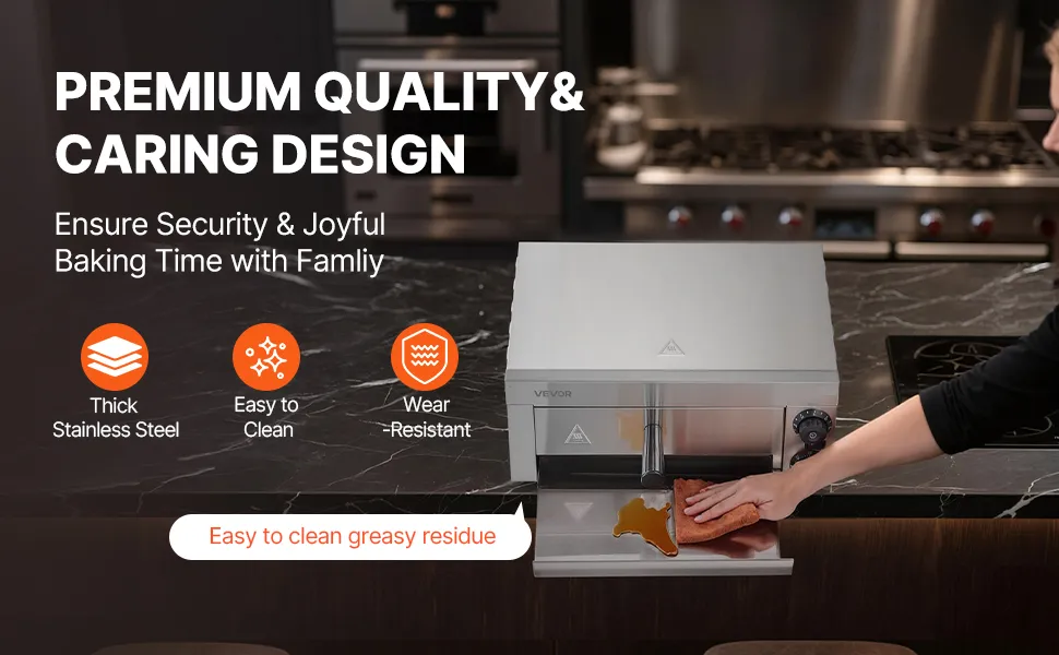 Intelligente Temperatur- und Zeitregelung: Passen Sie Backtemperatur und -zeit mit dem Drehknopf nach Belieben an. Sie können die Temperatur manuell von 0–300 °C (32 °F bis 572 °F) und die gewünschte Backzeit von 0 bis 60 Minuten einstellen, ohne sich Sorgen um Über- oder Untergaren machen zu müssen. Mit nur einem Tastendruck steuern Sie den Gareffekt perfekt und backen köstliche Gerichte.