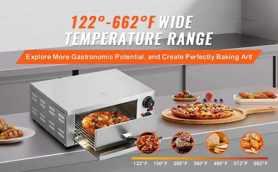 Vielseitig einsetzbar: Unser elektrischer Pizzaofen eignet sich ideal für den privaten und gewerblichen Gebrauch und ist eine gute Wahl für Restaurants, Küchen, Snackbars, Bäckereien, Familienfeiern und Partys. Dieser vielseitige Pizzaofen eignet sich nicht nur zum Backen leckerer Pizzen und Brezeln, sondern kann auch für Kartoffeln, Brot, Kuchen, Torten und Gebäck, Chicken Wings und mehr verwendet werden.