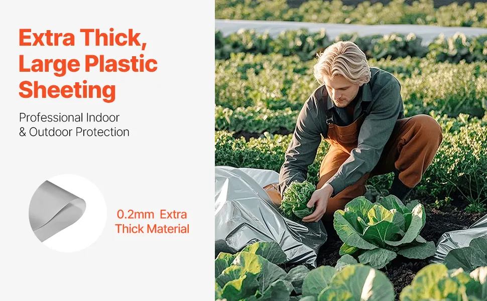 Effektiver Schutz: Die strapazierfähige Kunststofffolie mit Silberfilmoberfläche bietet hervorragende Lichtundurchlässigkeit, um Sonnenstrahlen zu blockieren, das Unkrautwachstum zu reduzieren und Blumen, Gemüse und andere Pflanzen vor invasivem Unkraut zu schützen.