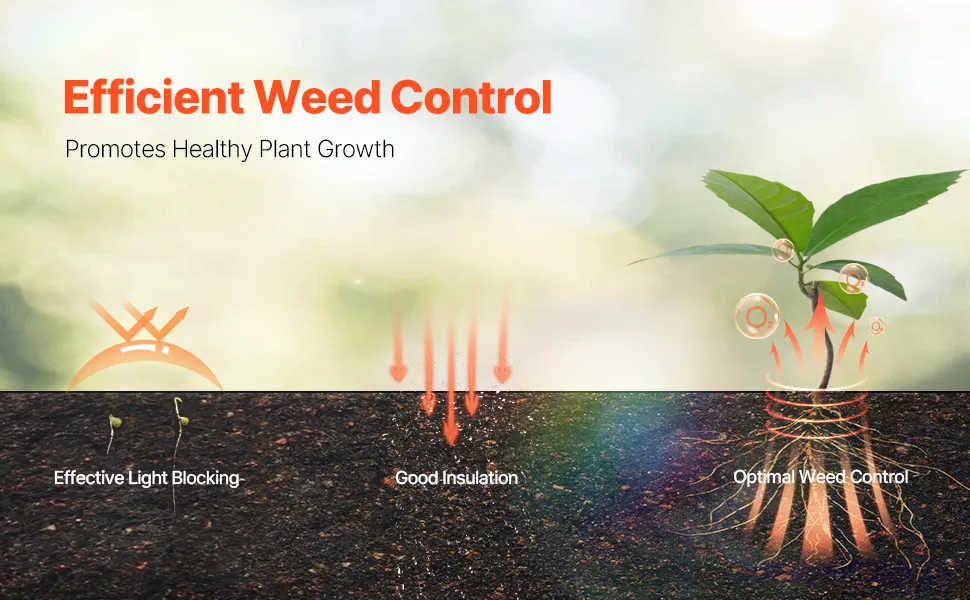 Die silbergraue Oberfläche ist äußerst undurchsichtig, blockiert wirksam die Sonne und reduziert das Wachstum von Unkraut. So werden Ihre Blumen, Gemüse und andere Pflanzen vor invasivem Unkraut geschützt.
