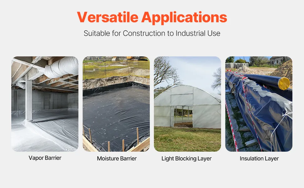 Vielseitige Anwendungen: Diese Dampfsperre für Kriechkeller ist ideal als Barriereschutz, Wärmedämmung und Versickerungsschutz sowie als lichtundurchlässige Unterhaltungseinrichtung. Diese Kunststofffolie ist sowohl für Industrie- als auch für Bauumgebungen geeignet.