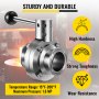 【304 EDELSTAHL】 - Der 304 Edelstahl der Sanitärabsperrklappe macht das Ventil mit hoher Zähigkeit und hoher Härte. Außerdem hat unsere Absperrklappe den 100 %-Druck-Hydraulik-Zuverlässigkeitstest mit einem Gummiring im Inneren bestanden, um die Abdichtung zu gewährleisten, sodass die Flüssigkeit nicht leicht auslaufen kann.