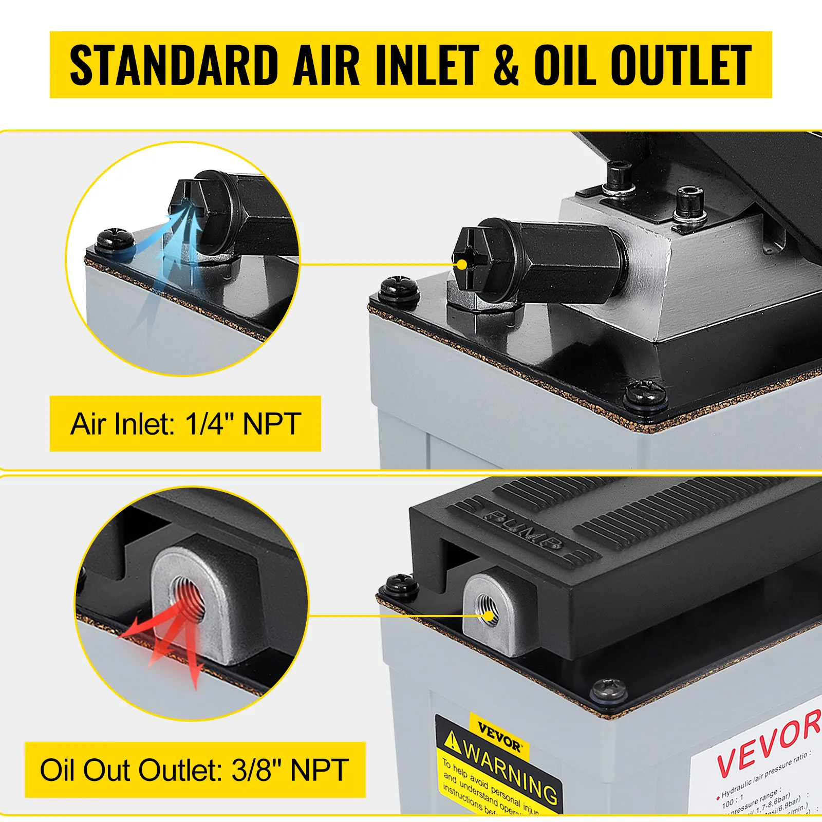 Diese druckluftbetriebene Fußpumpe eignet sich für das Aufstellen und Bewegen von schweren Maschinen, Autoreparaturen, Ölmontage, Maschinenwartung, usw.